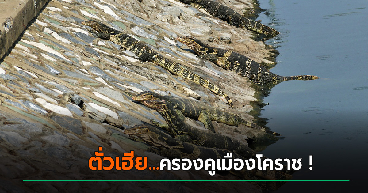 ตัวเงินตัวทองครองคูเมืองโคราช ว่ายน้ำ อาบแดด พักผ่อนสบายใจ เดินผ่านรถยังต้องหยุดให้ไปก่อน อบจ. เจอปัญหาใหญ่ ต้องตามซ่อมตลิ่งที่ถูกขุดจนพังมาตลอด