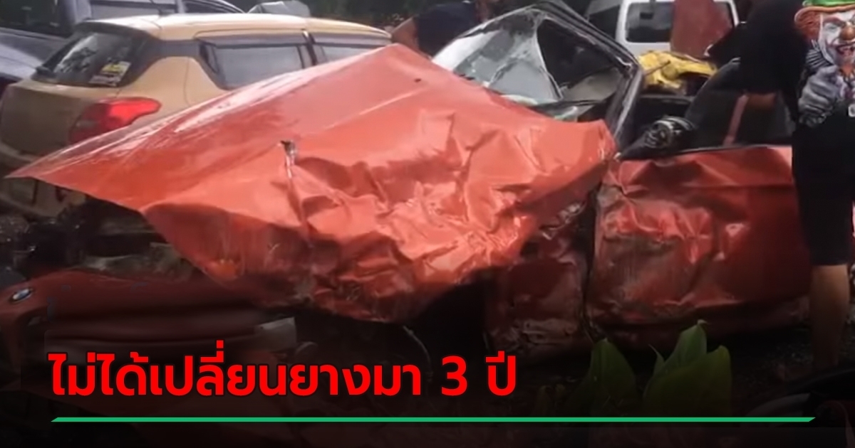 ทั้งนี้ พบว่า หน้ายางของรถคันดังกล่าวเริ่มแข็ง คาดยางรถเสื่อมสภาพเนื่องจากไม่ได้เปลี่ยนยางมานานแล้ว อีกทั้งที่ยางรถระบุว่าผลิตในปี 2018 ซึ่งก็ได้เวลาเปลี่ยนยางแล้ว