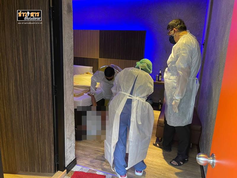 เมื่อไปถึงที่เกิดเหตุเป็นห้องพักโรงแรมม่านรูดแห่งหนึ่ง เบอร์ห้อง 38 บนพื้นข้างเตียงพบศพชาย อายุ 53 ปี ชาว จ.สุราษฎร์ธานี นอนเสียชีวิตอยู่บนพื้นข้างเตียงนอน ตรวจสอบตามร่างกายไม่พบบาดแผลถูกทำร้าย มีเพียงขวดเบียร์ถูกเปิดดื่มแล้ว 2 ขวด อีก 4 ขวดยังไม่เปิดอยู่ในถุง โดยมี น.ส.เอ (นามสมมุติ) อายุ 42 ปี เพื่อนผู้ตายอยู่ในห้อง