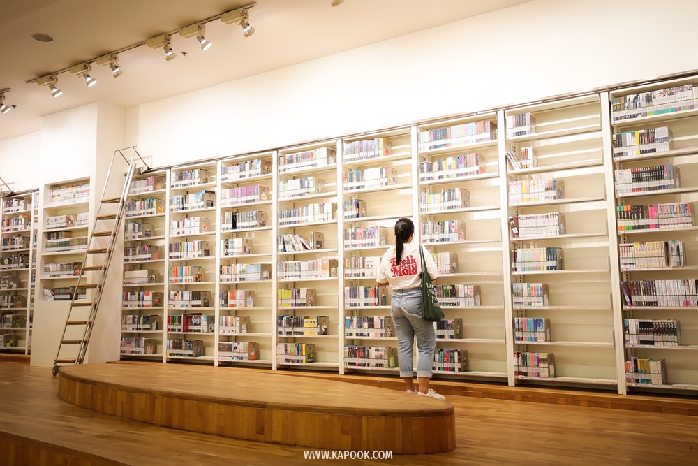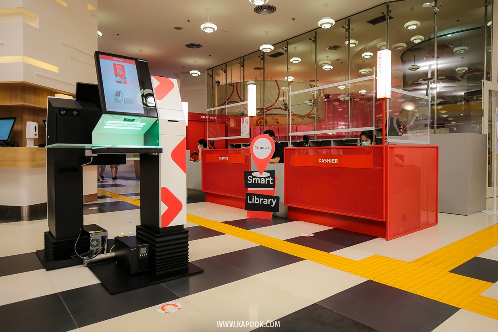 เมื่อเดินเข้ามาด้านในก็จะพบกับ Smart Library ห้องสมุดดีไซน์ใหม่ ที่เน้นการบริการตนเอง (Self Service) เพื่อลดการสัมผัสให้มากที่สุด บริเวณนี้จะเต็มไปด้วยหมู่มวลหนังสือที่จัดเรียงบนชั้นอย่างเป็นระเบียบ ไกลสุดลูกหูลูกตา ประมาณด้วยสายตาก็นับหมื่นเล่ม สามารถยืม คืน หรือต่ออายุ ผ่านตู้อัตโนมัติได้เลย และยังสามารถเติมเงินผ่านเคาน์เตอร์บริการได้ จะมีพนักงานคอยให้ความช่วยเหลืออยู่ตลอดเวลา