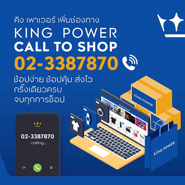 โดยการให้บริการ King Power Call to Shop จะเป็นบริการใหม่ล่าสุดของ คิง เพาเวอร์ เพื่อตอบโจทย์ความต้องการสินค้าภายในร้านค้าปลอดอากรของ คิง เพาเวอร์ ภายใต้คอนเซ็ปต์ 'กริ๊งเดียวครบ จบทุกการ ช้อป' สามารถรอรับสินค้าที่บ้านได้ภายใน 7 วัน เพียงโทรศัพท์สอบถามรายละเอียดสินค้าจากผู้ช่วยช้อปได้ที่หมายแลข 02-3387870 โดยเปิดให้บริการตั้งแต่เวลา 09.00 น. ถึง 18.00 น. ตลอดเดือนกรกฎาคมนี้ ด้วยโปรโมชั่นพิเศษที่คุ้มค่าสำหรับน้ำหอมและเครื่องสำอาง ที่ลดสูงสุด 10 % และเมื่อลงทะเบียนร่วมช้อป สามารถรับทันทีคูปองส่วนลด 2 ใบ จำกัด 1 สิทธิ์/ท่าน/วัน ซึ่งสามารถรับสิทธิ์สำหรับสินค้าที่ร่วมรายการ ดังนี้