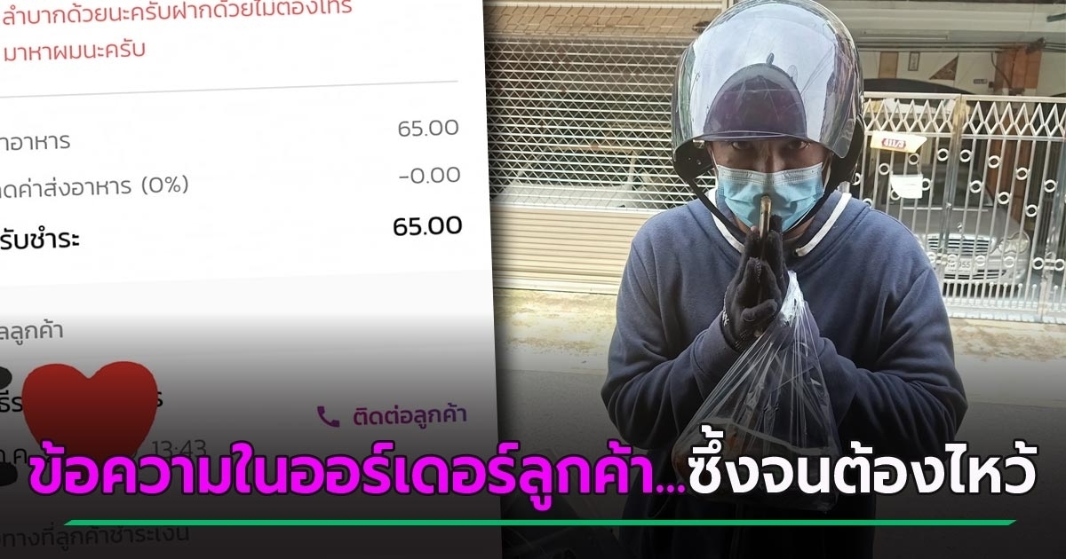 เมื่อไปถึงที่ร้าน ความซึ้งของเรื่องก็บังเกิด เพราะในข้อความที่คนสั่งเขียนบอกไรเดอร์นั้น ระบุว่า "ผมซื้อให้ไรเดอร์ ช่วยร้านอาหารที่ผมชอบหรือไรเดอร์ไม่ทาน ก็ให้กับคนที่เขาลำบากด้วยนะครับ ฝากด้วย ไม่ต้องโทรมาหาผมนะครับ"