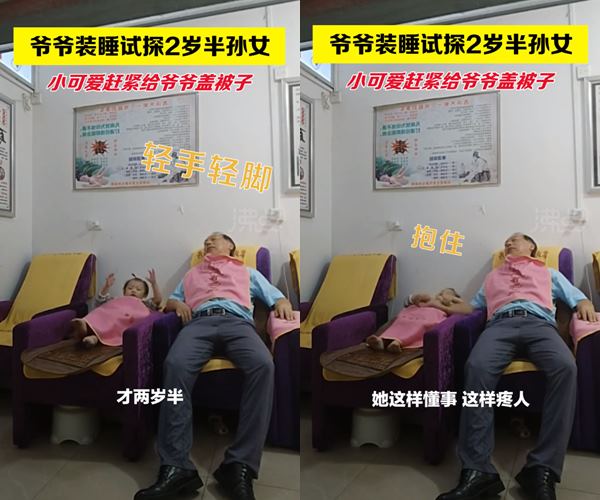 วันที่ 18 กรกฎาคม 2564 เว็บไซต์ sohu.com มีรายงานกรณีคลิปแสนอบอุ่นหัวใจที่กำลังเป็นไวรัลบนโลกออนไลน์ของจีนในขณะนี้ เผยให้เห็นโมเมนต์น่ารัก ๆ ระหว่างคุณตากับหลานสาววัย 2 ขวบครึ่ง จากเมืองหนานชง มณฑลเสฉวน เมื่อคุณตาแกล้งทำเป็นหลับระหว่างเลี้ยงหลานเพื่อจะทดสอบดูว่าเด็กน้อยจะทำอะไรหลังจากนั้น โดยมีการตั้งกล้องบันทึกภาพไว้ ซึ่งสิ่งที่เกิดขึ้นหลังจากนั้นช่างเป็นอะไรที่อบอุ่นมาก