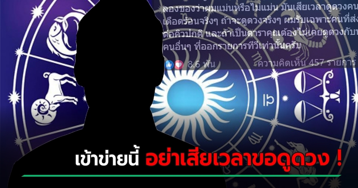 โหรวสุ ประกาศไม่ดูดวงให้คนที่เชียร์รัฐบาล มองคนไม่เท่ากัน ไม่ต้องทักมา งดออกทีวีเพราะคิวยาวถึง ธ.ค. ระบุถ้าดวงเมืองห่วย รัฐบาลไม่ดี ต่อให้ดวงขึ้นก็ได้ผลกระทบ