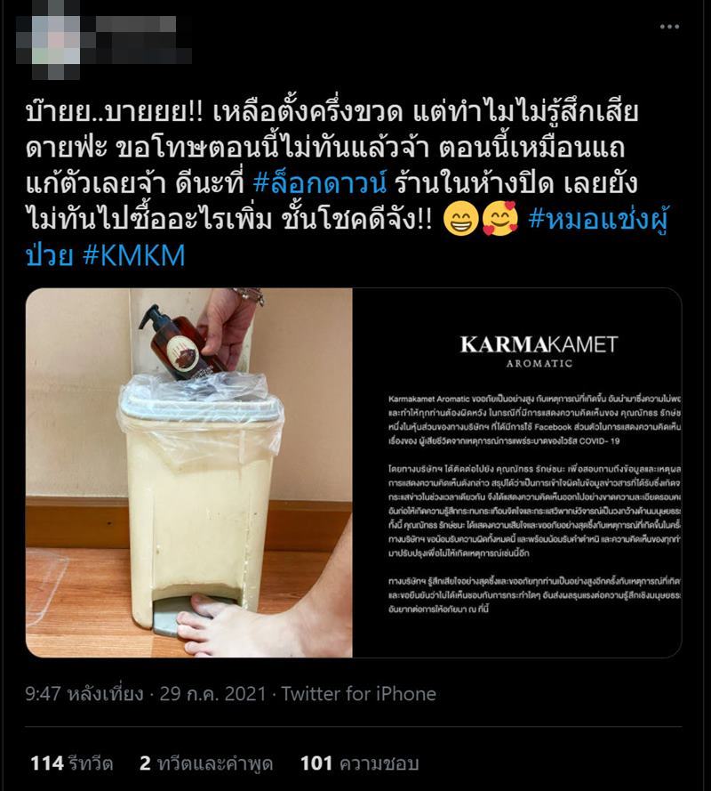 ลูกค้า Karmakamet สุดผิดหวังทัศนคติ ประกาศแบนสินค้า-แนะใช้ยี่ห้ออื่น-เทเครื่องหอมลงส้วม