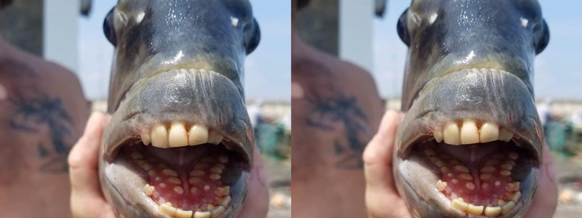 Nathan Martin ชายหนุ่มจากเซาต์มิลล์ส ประเทศสหรัฐอเมริกา ได้เดินทางไปยังท่าเรือ Jennette's Pier เพื่อตกปลา ในระหว่างที่เขาตกปลาได้นั้น กลับพบว่าปลาที่จับได้มีฟันเหมือนมนุษย์ หลังจากที่ภาพถูกโพสต์ลงเฟซบุ๊ก ก็กลายเป็นไวรัลไปทันที พร้อมกับข้อถกเถียงว่าเป็นฟันปลอมหรือเปล่า ทางด้านสำนักงานประมงทางทะเลนอร์ทแคโรไลนา ได้ออกมายืนยันแล้วว่า มันคือปลาชีปส์เฮด (Sheepshead Fish) มีทั้งฟันหน้า ฟันกรามและฟันบดเป็นจุดเด่น