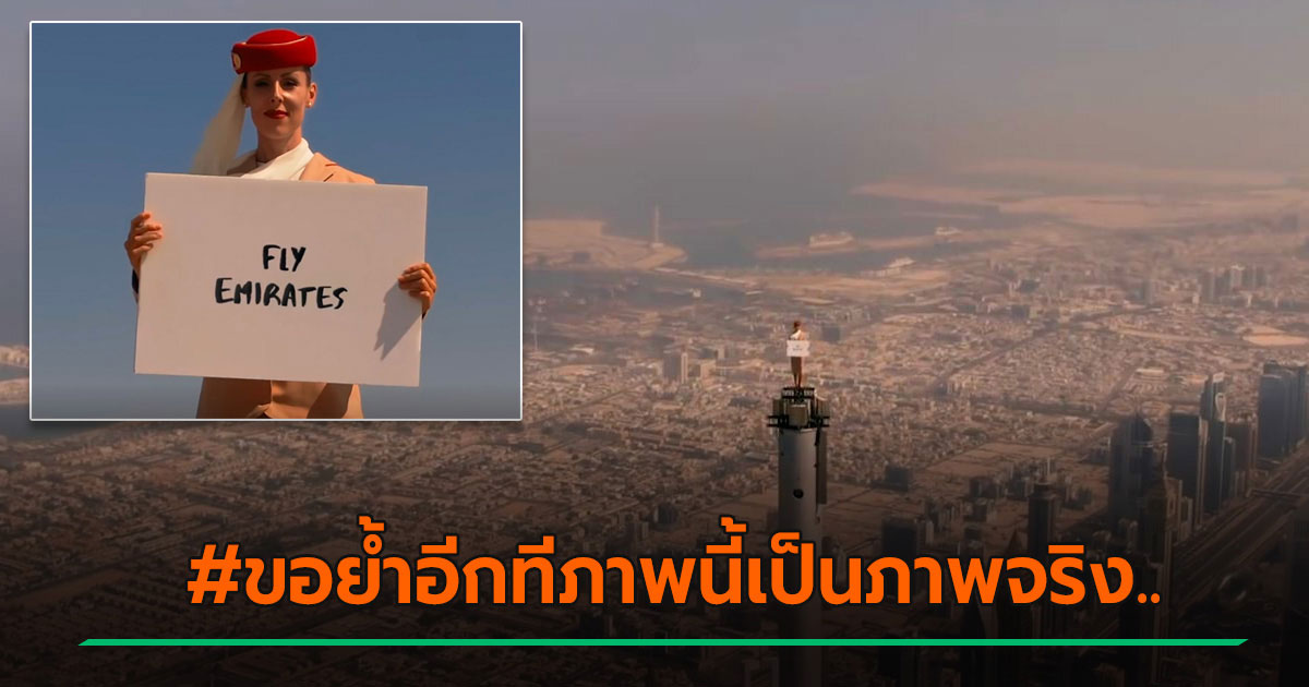 สายการบิน Emirates ปล่อยคลิปโฆษณาแสนเก๋ แอร์โฮสเตสสาวยืนสวย ๆ บนยอดตึก Burj Khalifa ตึกสูงที่สุดในโลก ระฟ้า 828 เมตร