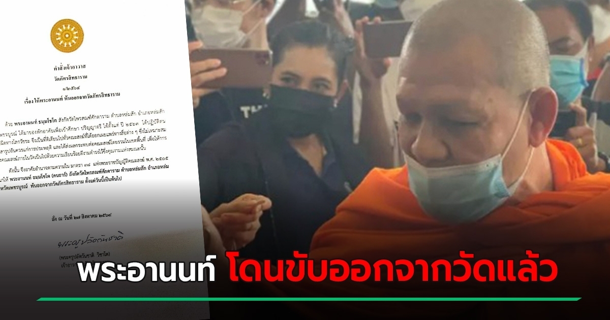 ล่าสุด วันที่ 30 สิงหาคม 2564 ช่อง 3 รายงานว่า วัดภัทรสิทธาราม ได้ออกหนังสือคำสั่งเจ้าอาวาส ประกาศให้พระอานนท์ พ้นออกจากวัดแล้ว เนื่องจากปฏิบัติตนผิดทางโลกวัชชะ เป็นที่ติเตียนไปทั่วคณะสงฆ์ ไม่เหมาะสมกับสมณสารูปอันควรแก่การประพฤติ ทำให้คณะสงฆ์โดยรวมได้รับความเดือดร้อน และการขับพระพ้นออกจากวัด ก็จะทำให้การปกครองคณะสงฆ์ภายในวัดเป็นไปด้วยความเรียบร้อยและดีงาม ดำรงไว้ซึ่งคุณงามแห่งสมณะนั้น