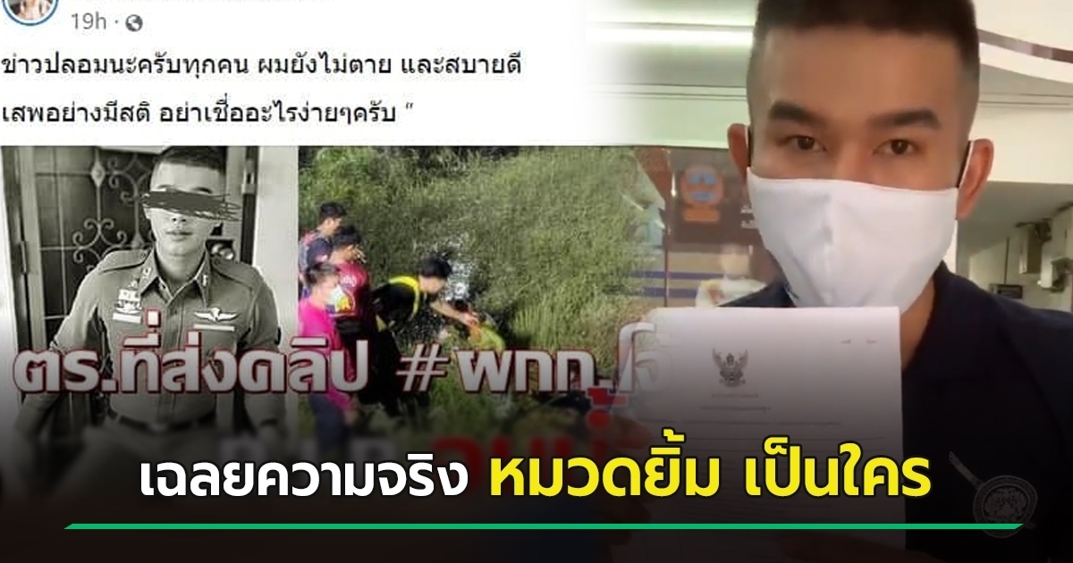 โลกออนไลน์แชร์ข่าว หมวดยิ้ม ทศพร แก้วเกิด คนปล่อยคลิป ผู้กำกับโจ้ ถุงดำคลุมหัวผู้ต้องหา ถูกพบจมน้ำตาย ตำรวจแจงเป็นข่าวปลอม ชายในภาพโผล่แจ้งความ ผมยังไม่ตาย !
