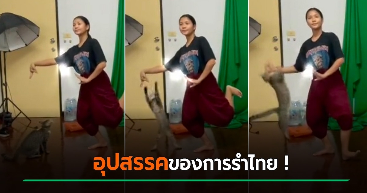 สาวนาฏศิลป์เผยคลิปเรียนออนไลน์ กำลังร่ายรำอ่อนช้อย แต่เจอแมวเหมียวป่วนหนักมาก กระโดดใส่รัว ๆ แบบนี้ใครจะรำต่อไหว ชาวเน็ตขำหนักมาก เอ็นดูเมื่อไรจะรำเสร็จ