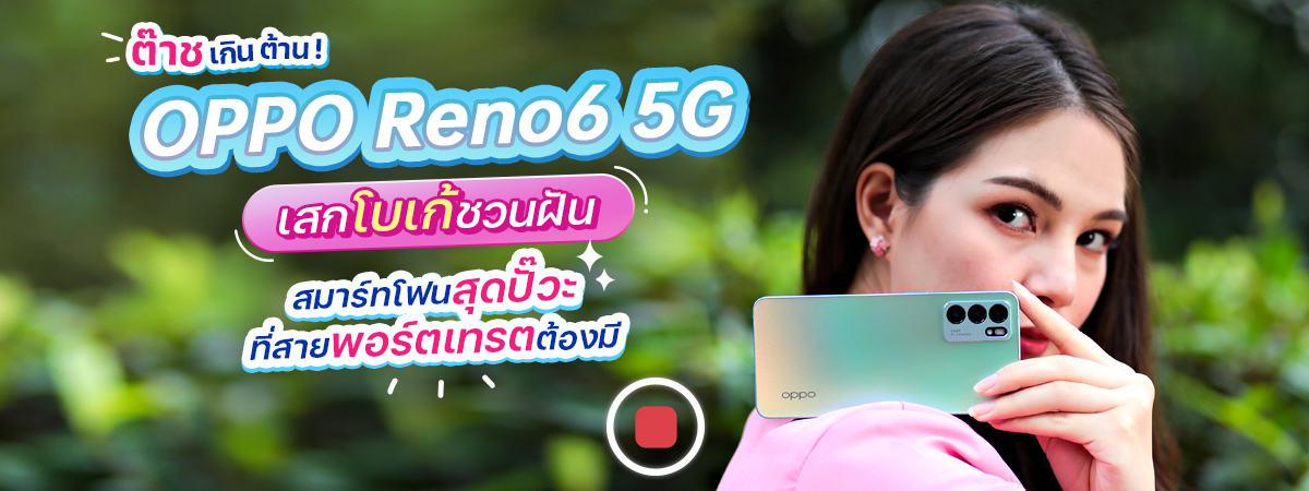 ณ จุดนี้ก็คงต้องบอกเลยว่า OPPO Reno6 5G จะกลายมาเป็นสมาร์ทโฟนที่เหมาะกับยุค 5G อย่างไม่ต้องสงสัย สวยทั้งรูปจูบก็หอม เพียบพร้อมทั้งฟังก์ชันการใช้งานครบครัน โดยเฉพาะสายถ่ายพอร์ตเทรตที่ต้องการให้ภาพและวิดีโอมีฟีลลิ่ง สวยโดดเด่น เพิ่มความโรแมนติกชวนฝัน และไม่พลาดบันทึกทุกช่วงเวลาดี ๆ ในชีวิตได้อย่างสวยงามแบบมืออาชีพ แถมดีไซน์ยังช่วยเสริมลุคให้ดูพรีเมียมและสะดวกสบาย ใครมีใจก็อย่าลืมไปตำกันนะคะ ซึ่งในซีรีส์เดียวกันนี้ก็ยังมี OPPO Reno6 Z 5G และ OPPO Reno6 Pro 5G ที่ปล่อยออกมาก่อนหน้านี้อีกด้วย
