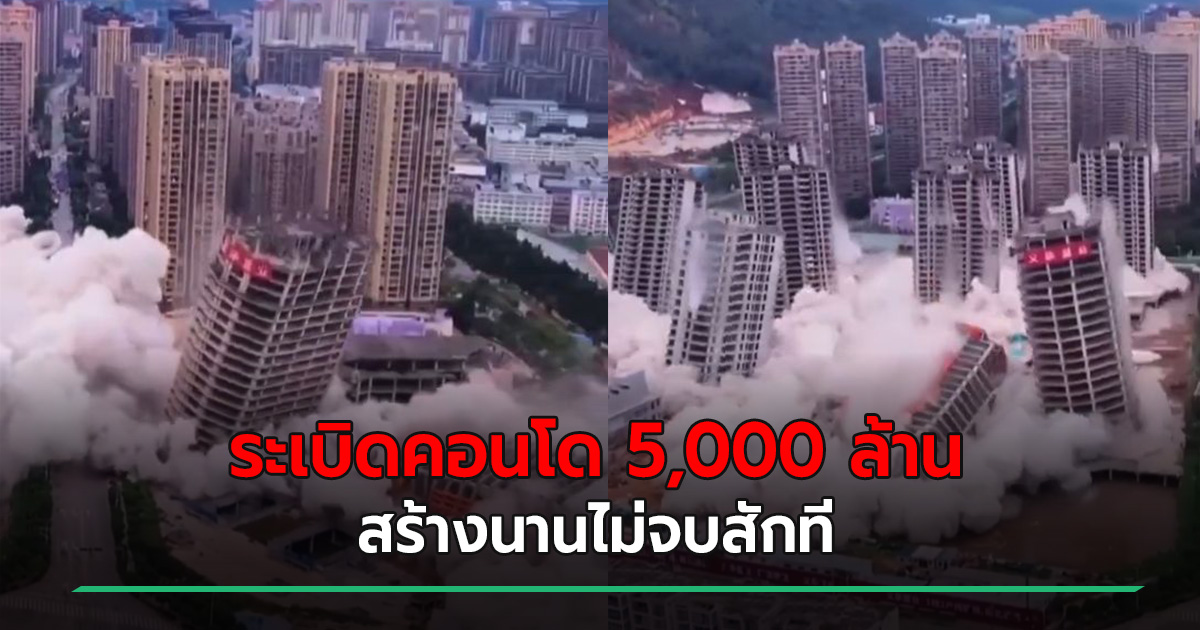 จีนระเบิดอาคารก่อสร้างครั้งใหญ่ ตึกคอนโดสูง 15 หลัง รวมมูลค่ากว่า 5 พันล้าน พังทลายในพริบตา หลังสร้างมา 8 ปี แต่ยังไม่แล้วเสร็จ