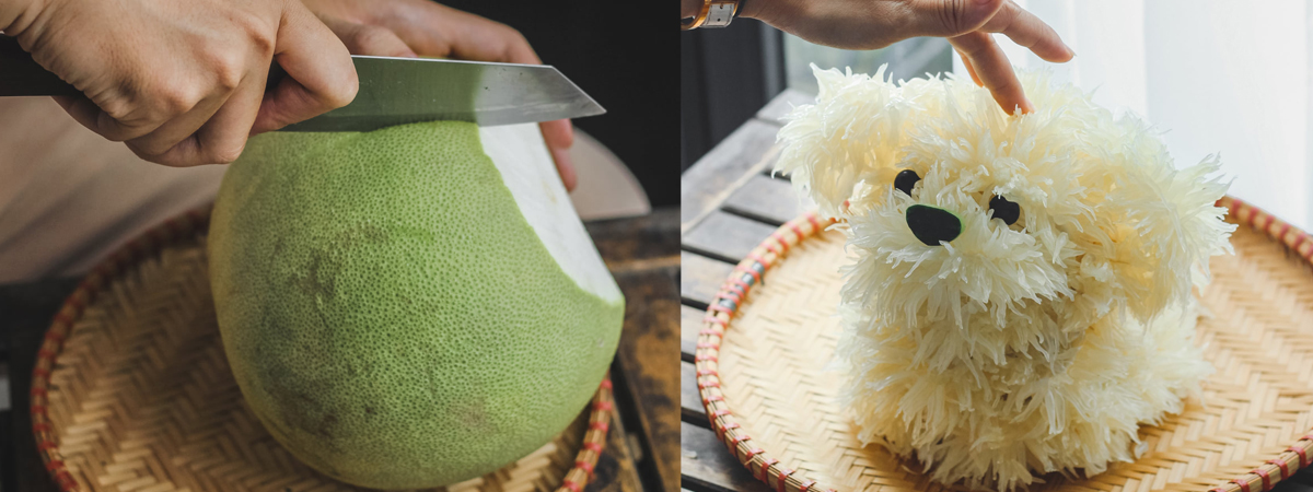 เชฟชาวเวียดนามจากเฟซบุ๊กเพจ Esheep Kitchen ได้เผยขั้นตอนในการปอกส้มโอออกมาเป็นรูปน้องหมา โดยเริ่มจากแกะส้มโอเป็นกลีบ ๆ มาก่อน จากนั้นเอามาผึ่งลมให้พอแห้งแล้วยีให้แตก ก่อนจะมาประกอบร่างเป็นน้องหมาพุดเดิ้ล จนตอนนี้ภาพดังกล่าวมีชาวเน็ตให้ความสนใจเป็นจำนวนมาก