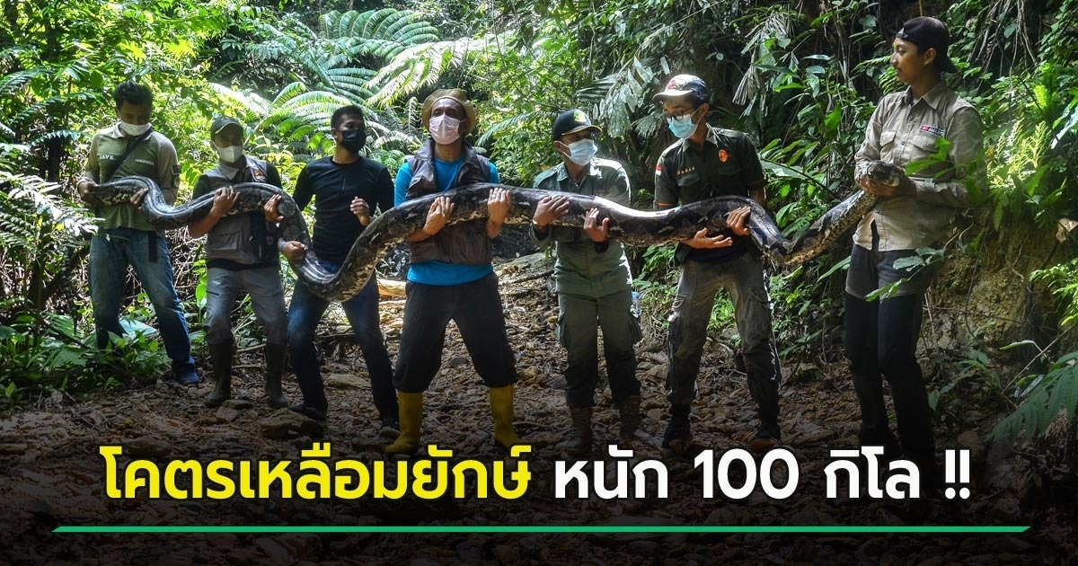 เจ้าหน้าที่พิทักษ์สัตว์ป่าในอินโดนีเซีย ช่วยกันจับงูเหลือมยักษ์ ยาวกว่า 9 เมตร น้ำหนักประมาณ 100 กิโลกรัม ต้องช่วยกันหามถึง 7 คน คาดเป็นโคตรงูรุ่นพ่อ อายุกว่า 30 ปี !
