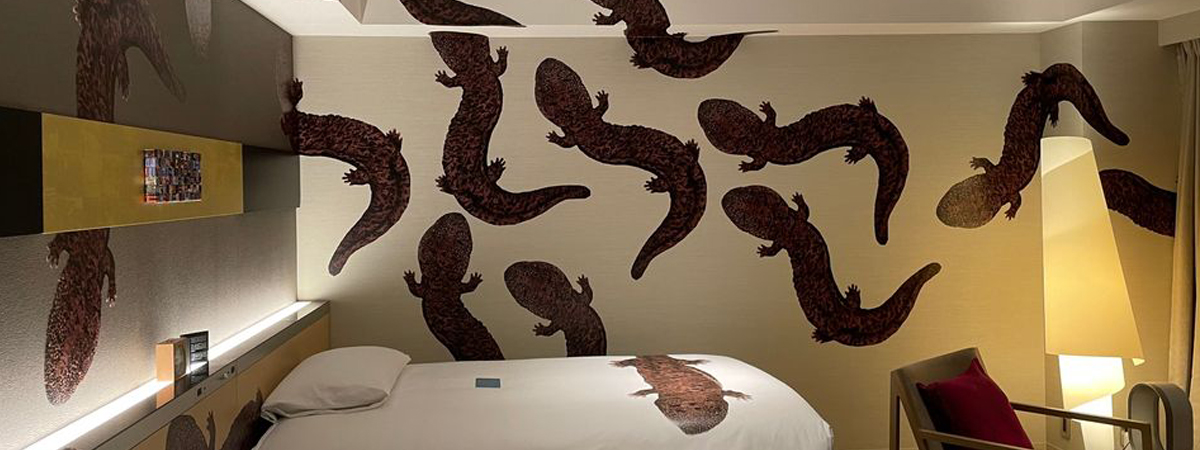 ซาลาแมนเดอร์ฟีเวอร์ โรงแรมญี่ปุ่นเลยถือโอกาสทำห้องนอนสุดพิเศษ เอาใจสาวกซาลาแมนเดอร์ ไม่ว่าจะมองมุมไหน ก็มีตัวซาลาแมนเดอร์ทั่วห้อง