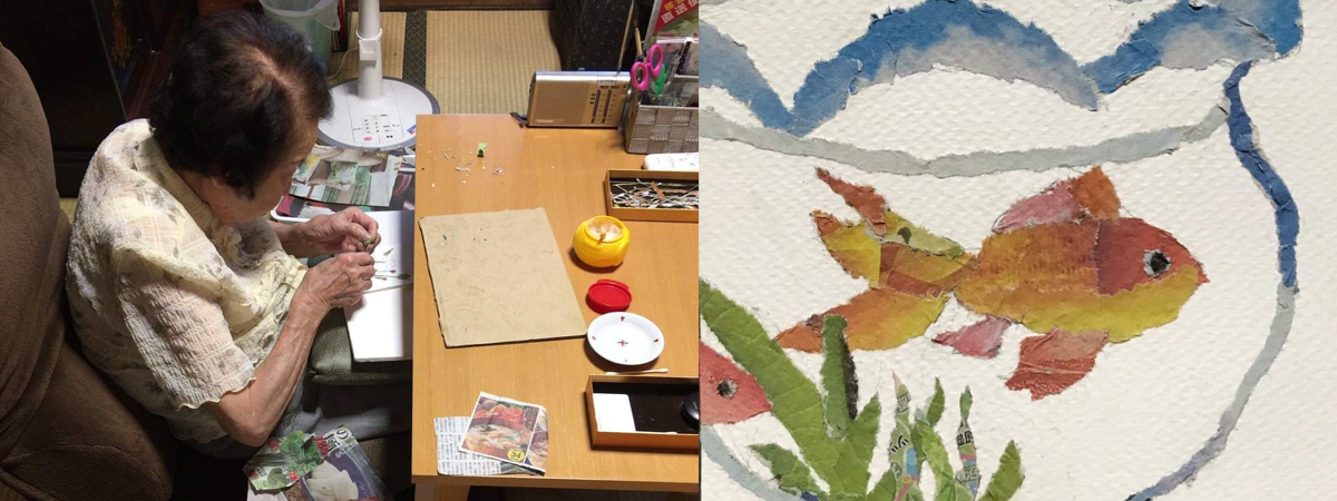 คุณยายเซทสึ จากญี่ปุ่นกับภาพศิลปะที่เธอบรรจงฉีกหนังสือพิมพ์ชิ้นเล็ก ๆ เลือกสี แล้วค่อย ๆ แปะ มีทั้งภาพอาหาร ของใช้ในบ้าน และสัตว์เลี้ยง ชาวเน็ตต่างพากันตะลึงไปกับผลงานศิลปะของคุณยายวัย 90 ปีคนนี้ อีกทั้งยังได้รับความสนใจเป็นจำนวนมาก ทั้งงดงามและน่ารัก จนกลายเป็นไวรัลดังบนโลกออนไลน์
