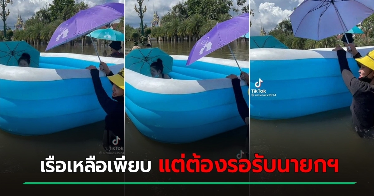 สาวเผยคลิป พาเพื่อนที่เพิ่งคลอดลูกได้ 2 วัน ออกจากโรงพยาบาลขณะน้ำท่วม ต้องนั่งในสระเป่าลม ทั้ง ๆ ที่หน้าโรงพยาบาลมีเรือเพียบ แต่ไม่มีใครช่วย เพราะต้องรอรับ พล.อ. ประยุทธ์ ลงพื้นที่