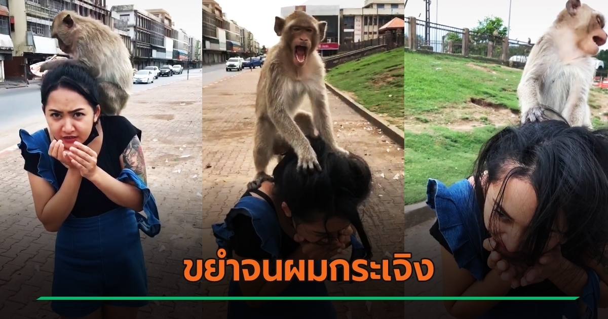 เปิดคลิปสาวถูกลิงขยำหัวจนผมกระเจิง ยื้อแย่งจะเอาโบมัดผม ด้านนายสัตวแพทย์เผยวิธีรับมือหากเจอเหตุการณ์นี้ เตือนระวังอย่าถูกลิงกัด