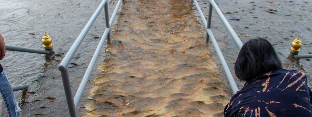 เฟซบุ๊กเพจ วัดพนัญเชิงวรวิหาร หลวงพ่อโต จังหวัดพระนครศรีอยุธยา ได้เผยภาพอันสวยงามที่เกิดขึ้นตรงสะพานทางเชื่อมไปแพปลา มีปลาหลากสายพันธุ์ว่ายบนสะพาน หลังระดับน้ำในแม่น้ำเจ้าพระยาสูงขึ้น สร้างความตื่นตาตื่นใจให้กับนักท่องเที่ยวที่มาให้อาหารปลา พร้อมถ่ายรูปเก็บไว้เป็นที่ระลึก ถือเป็นปรากฏการณ์ที่ไม่เคยเกิดขึ้นมาก่อน ล่าสุดทางวัดพนัญเชิงฯ ได้แจ้งมาว่าระดับน้ำในแม่น้ำลดลง สะพานให้อาหารปลากลับสู่โหมดปกติแล้ว