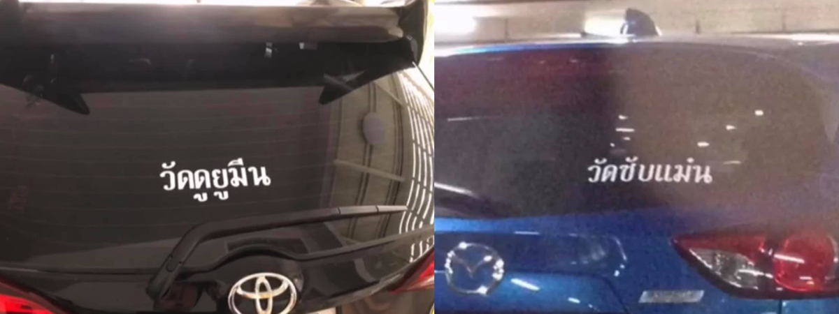 เฟซบุ๊ก กฤษณ์ บุญประสพ ได้เผยภาพสติ๊กเกอร์ติดท้ายรถยนต์ มีข้อความเลียนแบบวัดชื่อดัง ถ้าหากใครที่ยังจำกันได้กับประเด็นสติ๊กเกอร์วัดท่าไม้ ที่กลายเป็นไวรัลดังมานานแล้ว โดยคราวนี้ชาวเน็ตแห่แชร์กระจายกว่า 1,000 ครั้งบนเฟซบุ๊ก แต่ละอันเรียกเสียงฮาถล่มทลาย