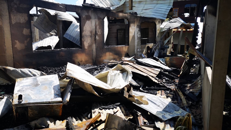 ในที่เกิดเหตุนั้นเป็นชุมชนบ้านไม้ 2 ชั้น ครึ่งปูนครึ่งไม้สภาพติดกัน ไฟกำลังลุกไหม้อย่างรวดเร็ว และลุกลามรวมถึง 5 หลัง เนื่องจากบ้านเป็นไม้เก่า จึงเป็นเชื้อเพลิงอย่างดี อีกทั้งการที่เป็นชุมชนแออัด ทำให้เข้าไปควบคุมเพลิงได้ยาก ต้องใช้เวลาเป็นชั่วโมงถึงสามารถควบคุมเพลิงได้สำเร็จ