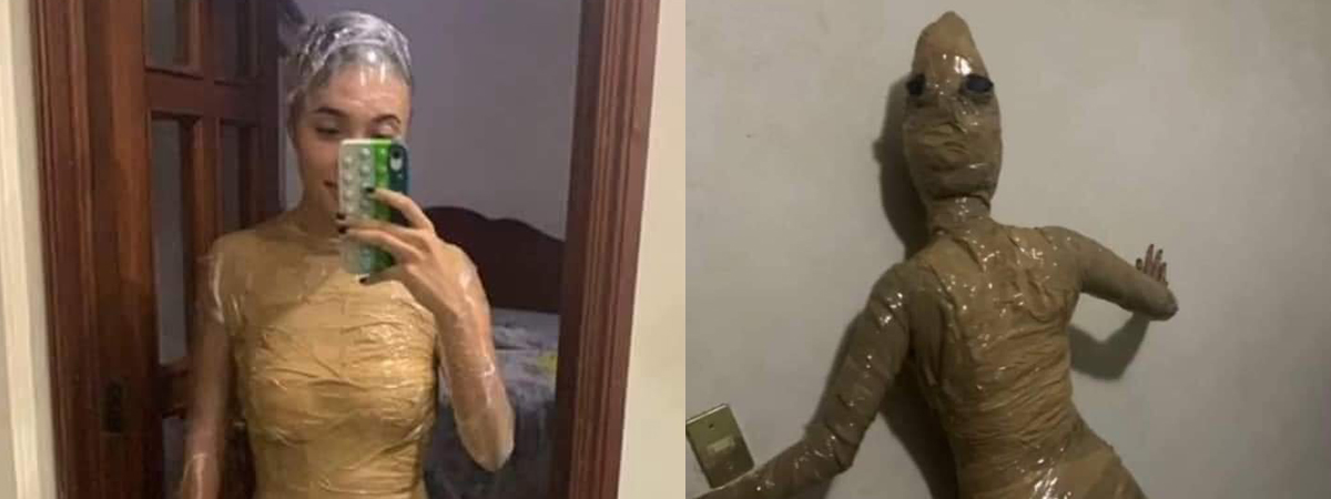 ทวิตเตอร์ @GabrielDomenic ได้เผยโมเมนต์สุดฮาของหญิงสาวท่านหนึ่ง ที่อยู่ ๆ เกิดไอเดียอยากแต่งคอสเพลย์ขึ้นมา แต่ถ้าแต่งแบบธรรมดา ตัดชุดพร้อมใส่มันจะดูธรรมดาไป เธอเลยลงทุนใช้สกอตช์เทปพันทั่วตัว เติมแต่งหางและตาเพียงเล็กน้อย ไม่อยากจะนึกภาพตอนแกะสกอตช์เทปเลยจริง ๆ