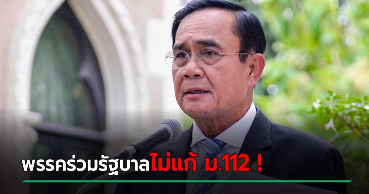 พล.อ. ประยุทธ์ จันทร์โอชา ยันพรรคร่วมรัฐบาล ไม่คิดแก้มาตรา 112 ลั่นไม่ควรทำลายสิ่งที่คนไทยทั้งประเทศเคารพนับถือ ย้ำเรื่องนี้พรรคร่วมรัฐบาลไม่เห็นด้วย