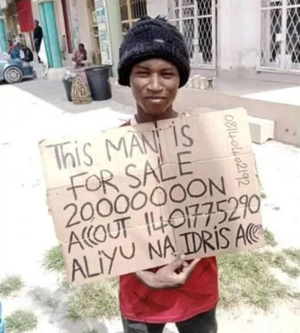 เมื่อวันที่ 4 พฤศจิกายน 2564 เว็บไซต์ อ็อดดิตี้เซ็นทรัล เผยเรื่องราวของ อาลียู นา ไอดริส หนุ่มชาวไนจีเรียวัย 26 ปี เมื่อเร็ว ๆ นี้เขาได้รับความสนใจจากสื่อออนไลน์ ภายหลังจากออกมาประกาศขายตัวเองผ่านทางโซเชียลมีเดีย โดยได้โพสต์รูปภาพของตัวเขาเองขณะถือป้ายข้อความว่า "ขายผู้ชายคนนี้ราคา 20,000,000 ไนรา (ราว 1.6 ล้านบาท)"