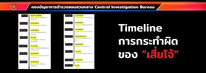 สำหรับไทม์ไลน์การกระทำผิดของ เสี่ยโจ้ ถูกดำเนินคดีอาญาทั้งหมด 15 คดี ดังนี้