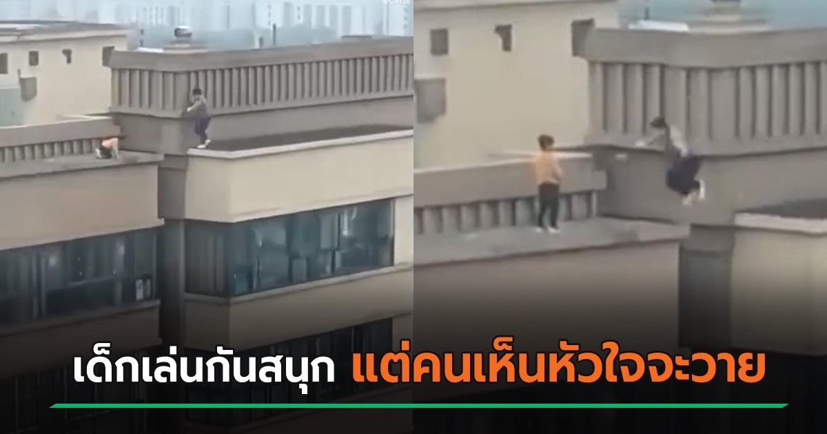 นาทีระทึก เจ้าหนูจอมซนพากันไปเล่นบนดาดฟ้า ตึกสูง 27 ชั้น โดดข้ามตึกไป-มาสนุกสนาน แต่คนเห็นหัวใจแทบวาย งงมากพ่อแม่ไปไหน ทำไมปล่อยลูกซนขนาดนี้
