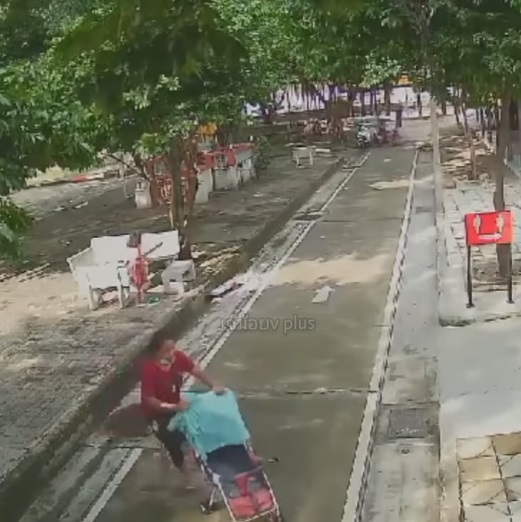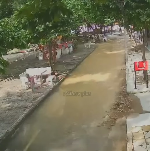 ทั้งนี้ ในคลิปดังกล่าว จะเห็นภาพของคุณแม่ท่านหนึ่งที่เข็นรถเข็นมา และเด็กเล็ก กำลังมองไปทางแม่น้ำ จนกระทั่งน้ำมา คนก็วิ่งหนีกันกระเจิง คุณแม่ก็รีบเข็นรถเข็นหนี ส่วนเด็กก็วิ่งตามและบอกว่า "ไปแล้ว กำลังมา" ก่อนที่เด็กน้อยจะวิ่งกลับมาเอาสเกตบอร์ดที่กำลังจะจมน้ำ และจะเห็นญาติโยมและพระสงฆ์ วิ่งหนีน้ำเช่นกัน