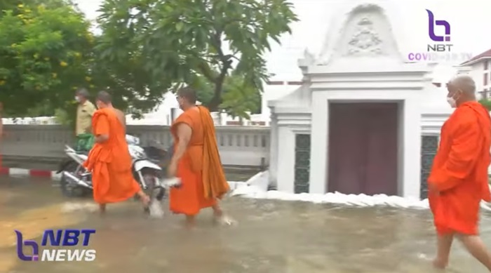 เปิดนาที น้ำทะเลหนุน ทะลักท่วมวัดเขมาภิรตาราม ญาติโยม พระลูกวัด หอบของหนีกระจาย หลังคันกั้นน้ำเอาไม่อยู่ ถล่มลงมาเต็ม ๆ