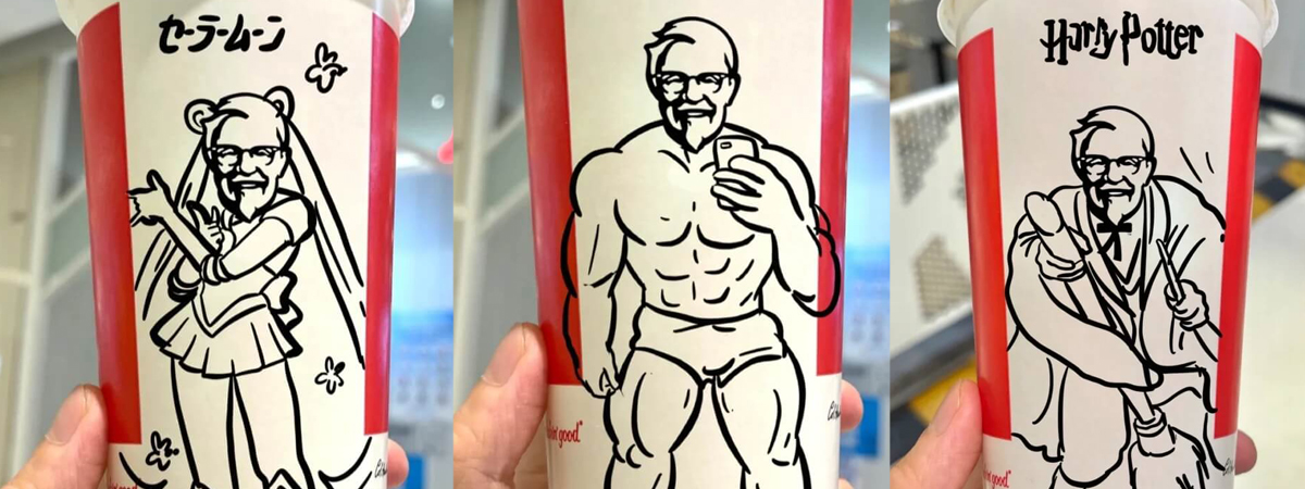 นักวาดสุดครีเอตลองเติมโลโก้ผู้พันแซนเดอส์บนแก้ว KFC ให้เป็นภาพเต็มตัวหลากหลายรูปแบบ ทำเอาชาวเน็ตขำลั่น อวสานลุคผู้พันแซนเดอส์สุดน่าเกรงขามที่เราคุ้นเคย