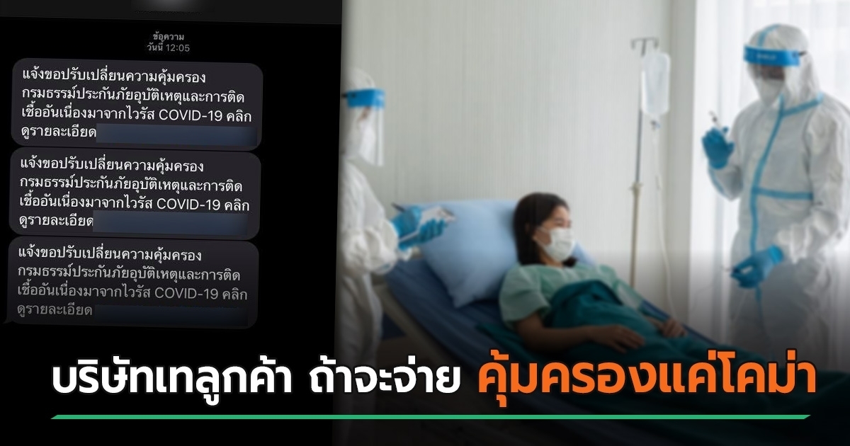 ประกันโควิด เจอ จ่าย ไม่จบง่าย ลูกค้าโวยสนั่นโดนบริษัทประกัน ส่ง SMS เท บังคับเปลี่ยนเป็นคุ้มครองกรณีโคม่า หรือเปลี่ยนเป็นประกันอุบัติเหตุ ใน 7 วัน ลูกค้าจี้ คปภ. ชี้แจง