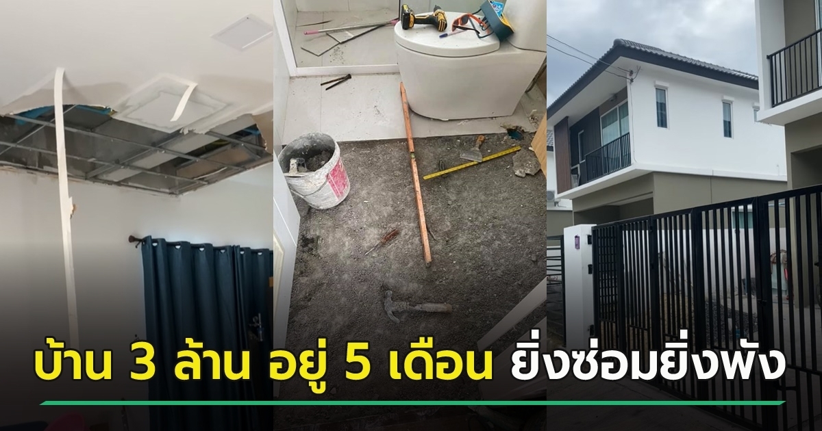 อ่านข่าว : กลุ้มใจ ซื้อบ้านมาหลักล้าน พังตั้งแต่เดือนแรก ซ่อมรัวไม่หยุด ภาพล่าสุดกลัวพังมาก