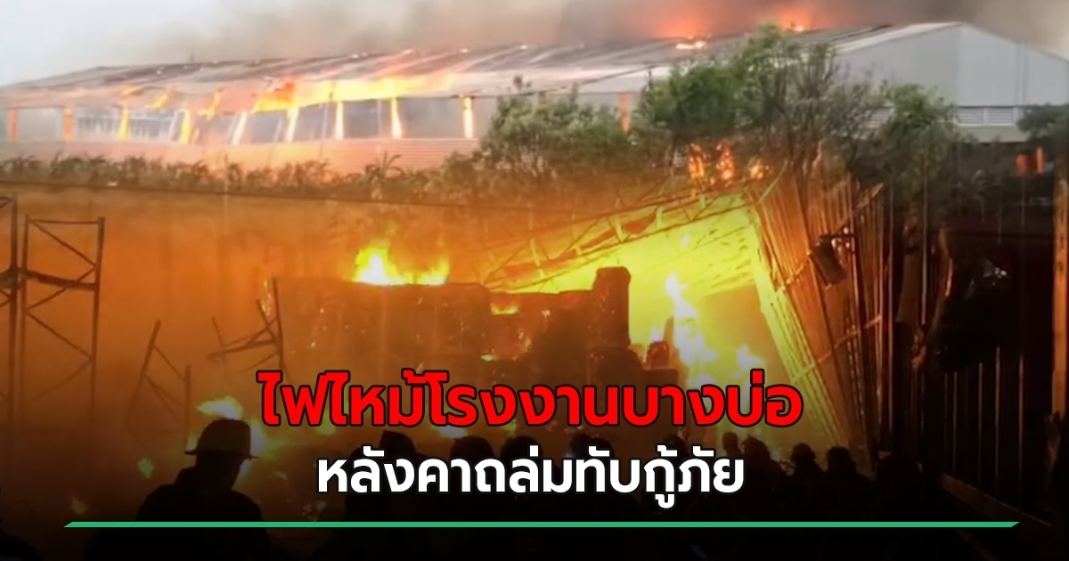 ไฟไหม้โรงงานกระดาษ อ.บางบ่อ พนักงานหนีตายนับร้อยชีวิต เพลิงโหมหนักทำเหล็กโครงถล่ม กู้ภัยเจ็บ 5 ราย 1 ในนั้นเป็นอาสา อายุแค่ 14 ปี ล่าสุดคุมเพลิงได้แล้ว ยังไม่ทราบสาเหตุไหม้