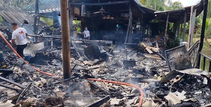 เกิดเหตุไฟไหม้ร้านอาหารดัง จ.ราชบุรี หลังหยุดกิจการไป 1 ปี เพราะพิษโควิด เจ้าของร้านพาครอบครัวออกไปทำบุญวันพ่อ ไม่นานหลานโทร. มาแจ้งเหตุ ไฟลามไหม้วอดทั้งหลัง แทบไม่เหลืออะไรเลย