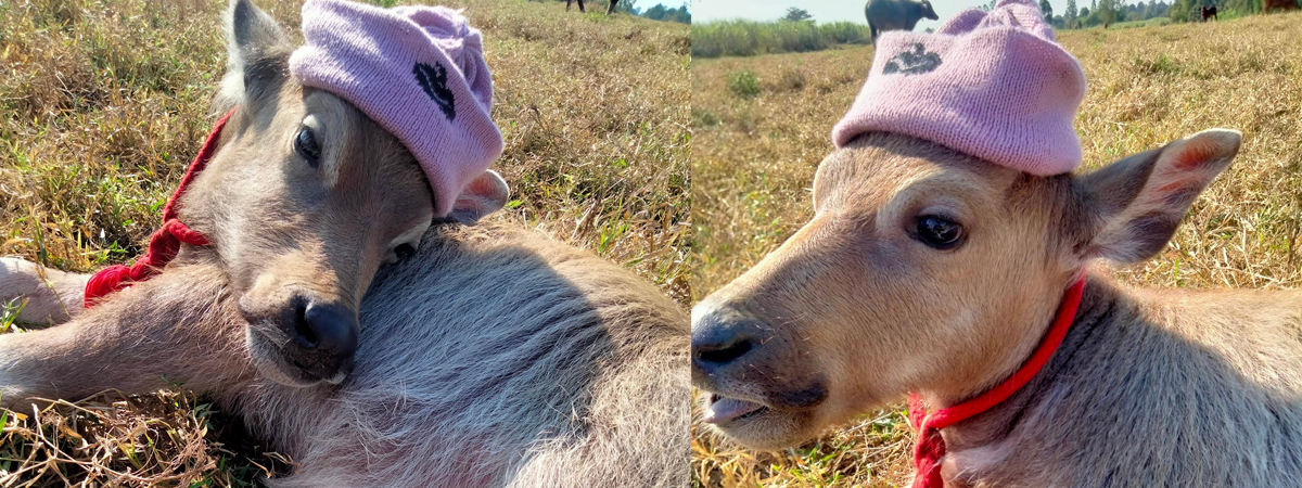 เฟซบุ๊ก สุทาทิพย์ พึ่งมา ได้เผยความน่ารักของ น้องจูเนียร์ ควายน้อยตัวผู้วัย 1 เดือน ที่มาพร้อมกับแฟชั่นหน้าหนาวด้วยหมวกไหมพรม แถมยังมีความตะมุตะมิตอนถ่ายรูปอีกด้วย จนชาวเน็ตแพ้ทางให้กับความน่ารักของน้องจูเนียร์อย่างราบคาบ ภาพดังกล่าวได้รับความสนใจอย่างล้นหลาม