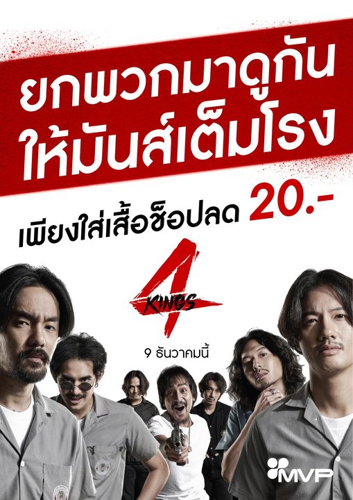 เรียกได้ว่าเป็นภาพยนตร์ที่กระแสแรงตั้งแต่ยังไม่ออกฉายสำหรับเรื่อง 4KINGS อาชีวะ ยุค 90's ซึ่งเป็นเรื่องราวเกี่ยวกับการยกพวกตีกันของนักเรียนอาชีวะ ยุค 90's ซึ่งในเรื่องก็มีการสอดแทรกสาระ นัยต่าง ๆ งานนี้โรงภาพยนตร์แห่งหนึ่งใน จ.กาฬสินธุ์ ก็จัดโปรโมชั่นชื่อ "ยกพวกมาดูกัน ให้มันส์เต็มโรง เพียงใส่เสื้อช็อป ลด 20"