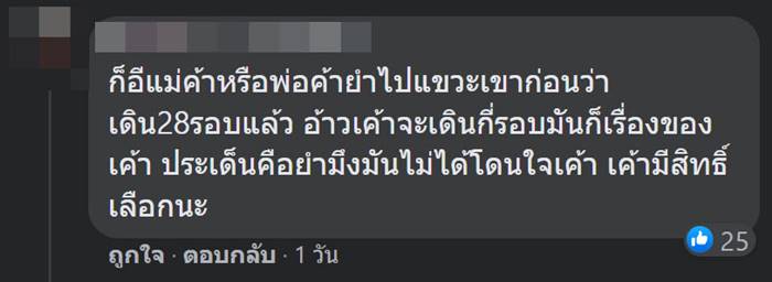 ปรากฏว่าช่วงหนึ่ง เจ้าของร้านยำได้แซวหญิงคนหนึ่งที่เดินผ่าน ระบุว่า "สวัสดีค่ะลูกค้าขา ลูกค้าเดินไปประมาณ 28 รอบแล้ว...ไม่คิดจะแวะ ?" พร้อมทั้งหันไปหาแบบทั้งตัว ทางผู้หญิงคนดังกล่าว ก็ตอบกลับว่า เดินสัก 50 รอบได้ไหม เจ้าของร้านยำ คล้ายประชดว่า รอรอบที่ 60 อะ ได้ไหม ได้ปะ ทำให้ลูกค้าซึ่งเดินพ้นไปแล้วหันมาตอบเพิ่มว่า พื้นที่สาธารณะจะเดินกี่รอบก็ได้ ส่วนเจ้าของร้านยำก็เดินเข้าไปพูดคุยใกล้ ๆ สักพัก ก่อนต่างคนจะต่างแยกย้าย