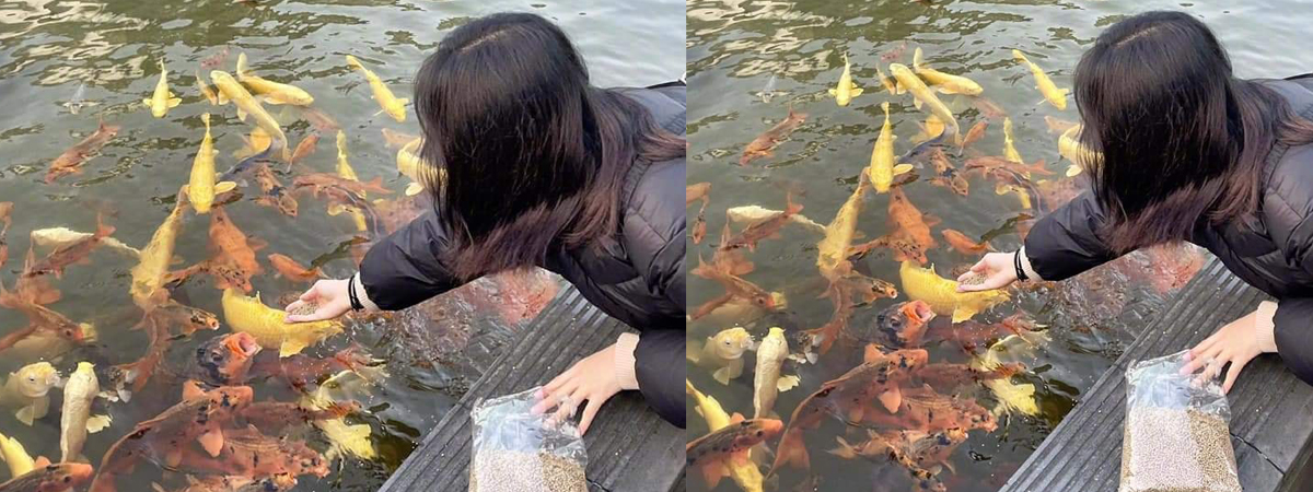 เฟซบุ๊ก 林柏年 ได้เผยภาพของหญิงสาวคนหนึ่ง ซื้ออาหารปลามา 1 ถุง เพื่อที่จะป้อนฝูงปลาคาร์พในน้ำ แต่ดูเหมือนเธอจะถูกใจปลาคาร์พตัวหนึ่ง เลยลองป้อนใส่ปากดู มันก็จะกินอิ่มอร่อยกว่าชาวบ้านหน่อย ชาวเน็ตต่างพาเอ็นดูให้กับโมเมนต์น่ารักกันทั้งโซเชียล