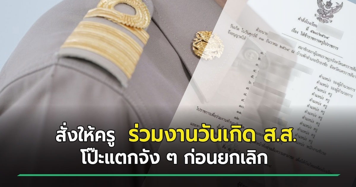 เผยเอกสารโรงเรียนดัง จ.นครราชสีมา ให้รอง ผอ. พร้อมครูและคนขับรถ รวม 12 คน ไปร่วมงานทำบุญวันเกิด ส.ส. โคราช ที่ปักธงชัย ระบุให้ปฏิบัติหน้าเต็มความสามารถ ล่าสุดสั่งยกเลิกอย่างไว