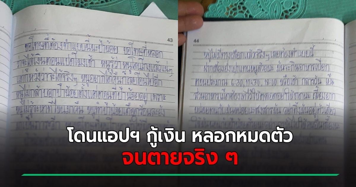 สาววัย 27 ถูกแอปฯ มิจฉาชีพหลอกให้โอนเงิน ออกอุบายจะทดสอบว่าลูกหนี้สามารถโอนเงินคืนตามกำหนดได้หรือไม่ หลอกให้โอน 10 ครั้ง จนหมดตัว สาวเครียดหนัก ตัดสินใจเขียนจดหมายลาตาย
