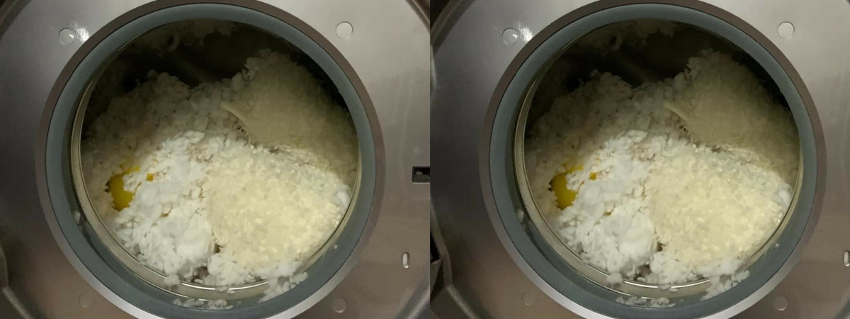 เมื่อมีคนจีนสะดุดตาเห็นอะไรบางอย่าง มองผ่าน ๆ นึกว่าหม้อหุงข้าวเครื่องใหญ่ พอได้รู้ความจริงว่า มันเป็นเครื่องซักผ้า ทำเอาเจ้าตัวตกใจหนักมากนึกว่าใครเอาข้าวมาหุงในเครื่องซักผ้า หลังจากที่ไปดูใกล้ ๆ พบว่า... ที่ขาว ๆ นั้นไม่ข้าว มันคือขนตุ๊กตาแกะ ผลของการเอาตุ๊กตาเข้าเครื่องซักผ้า สภาพน้องแกะจึงเละตุ้มเป๊ะ
