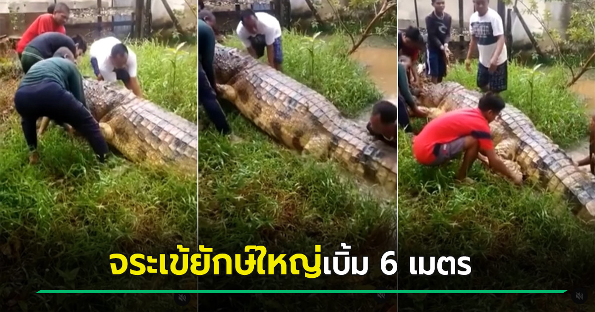 เปิดภาพอึ้ง จระเข้ไซซ์ยักษ์จากอินโดนีเซีย ใหญ่เบิ้มยาวร่วม 6 เมตร ต้องใช้แรงผู้ชาย 6 คนช่วยกันดันถึงนำขึ้นจากน้ำได้ ใหญ่ขนาดนี้กลืนคนได้สบาย