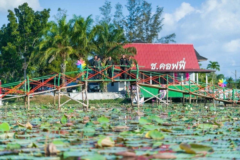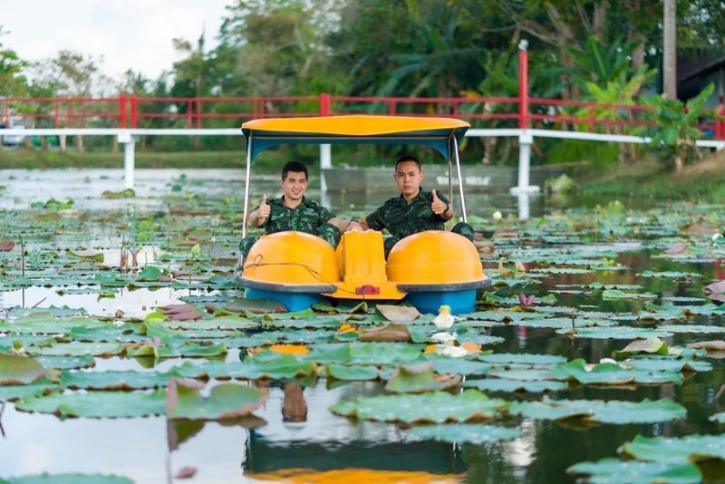 โดยที่คาเฟ่แห่งนี้ จะมีจุดเช็กอินให้ถ่ายรูปคือ สะพานไม้ไผ่กลางสระบัว มีบรรยากาศดี ๆ ริมสระบัวและมีเรือเป็ดให้ปั่น พร้อมกับนำทหารหน้าตาดี ทั้งอยู่ในชุดเครื่องแบบและชุดลำลอง มาถ่ายรูปเพื่อโปรโมตคาเฟ่ ซึ่งเปิดทุกวันเวลา 08.00 - 19.00 น. และทางกองทัพภาคที่ 4 ยังบอกว่า "ช่วงเย็นบรรยากาศดีมาก"