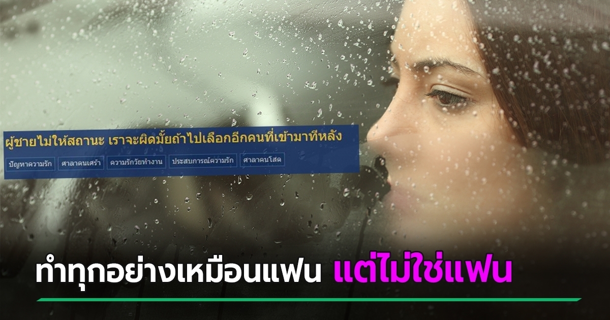 สาวเล่าประสบการณ์ความรัก คุยกับผู้ชายทำทุกอย่างเหมือนแฟน แต่ไม่มีสถานะ เจอแบบนี้ผิดไหมถ้าปันใจให้คนมาทีหลัง งานนี้เมนต์กันสนั่น