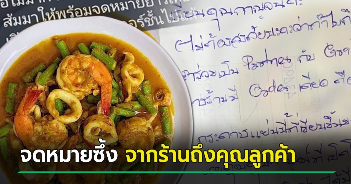 เรียกได้ว่ายุคที่ค่าครองชีพแพงแบบนี้ นอกจากผู้บริโภคที่เดือดร้อนแล้ว บรรดาร้านค้าเล็ก ๆ ต่างก็ได้รับผลกระทบเช่นกัน แต่บางครั้งด้วยความตั้งใจบริการและความใส่ใจลูกค้า ก็อาจจะนำมาซึ่งเรื่องราวอันน่าประทับใจเช่นกรณีนี้เมื่อวันที่ 27 มกราคม 2565 ผู้ใช้ทวิตเตอร์ @Soulmate2H ออกมาเล่าประสบการณ์ซึ้ง หลังสั่งอาหารผ่านแกร็บจากร้านหนึ่ง เมื่ออาหารมาส่งด้านในพบว่า ร้านแถมส้มมาให้ นอกจากนี้ยังมีจดหมายเขียนด้วยลายมือ ใจความเพื่อขอบคุณที่สั่งออร์เดอร์จากร้านตลอด 3 วัน เหตุผลที่ร้านจำได้เพราะทั้งวันมีแต่ออร์เดอร์ของเธอเพียงเท่านั้น โดยจดหมายระบุว่า