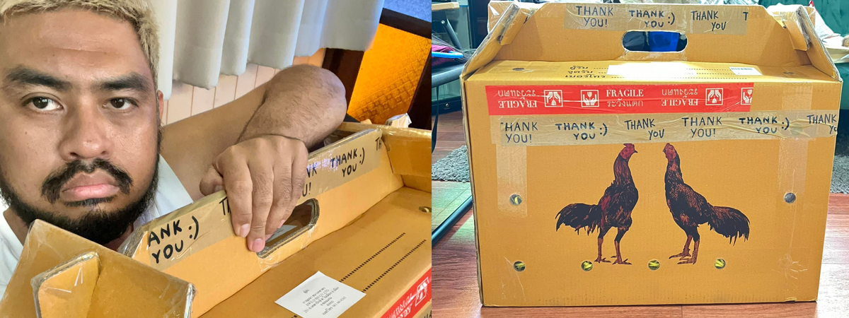 งานนี้ทำคนส่งไปรษณีย์ตกใจ นึกว่าสั่งไก่ชนมาเลี้ยง หลังจากเปิดกล่องได้รู้จริง ๆ ซะที ว่าใช่ไก่ชนจริงรึเปล่า