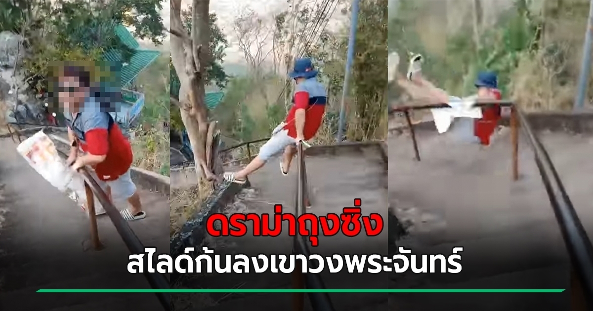อย่าหาทำ หนุ่มไปเที่ยวเขาวงพระจันทร์ ขึ้นบันได 3,790 ขั้น ขากลับนั่งถุงซิ่งสไลด์จากราวบันได ผลคือ ล้มไม่เป็นท่าหลังฟาดพื้น ชาวเน็ตชี้ ดีที่ไม่หัวฟาดพื้นตาย